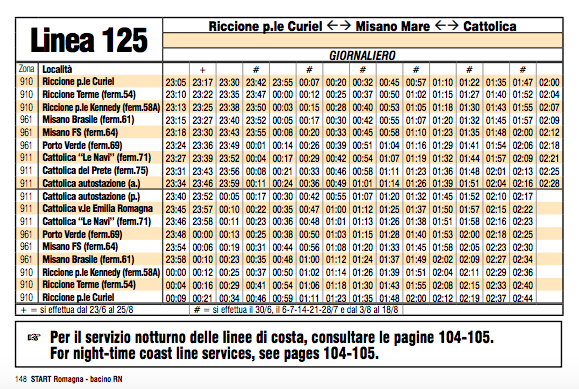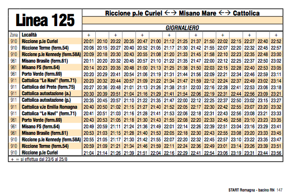 Orari degli autobus e dei tram delle linee di Cattolica