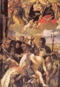 Tempio malatestianoIl Tempio malatestiano, dal 1809 chiesa Cattedrale della diocesi, è famoso esempio di architettura rinascimentale, forse il più insigne edificio riminese, costruito da Leon Battista  Alberti come un prezioso scrigno di marmo attorno alla chiesa gotica di S. Francesco. L’opera, eseguita per volontà di Sigismondo Malatesta, signore di Rimini, fu iniziata nel 1446; è  rimasta incompiuta nel 1460. La chiesa ha subito recentemente un accurato restauro. All’interno sono conservati un crocifisso di Giotto Crocifisso di Giotto - Tempio Malatestiano, un affresco di  Piero della Francesca, bassorilievi e sculture di Agostino di Duccio, una tela di Giorgio Vasari.